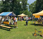 Der Kinderjahrmarkt mit Spielbuden, Kinderkarussell und Hüpfburg sorgt für strahlende Kinderaugen. Kreativ wird es beim Basteln von Traumfängern und Bemalen von Waldwichteln. Ein sportlicher Höhepunkt: der Fussball-Vierkampf der Hans-Weber-Fussballschule ab 13.30 Uhr - als Gewinn winkt ein von einem SC-Freiburg-Spieler signierter Fussball.