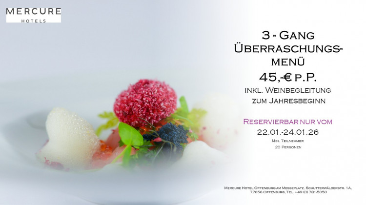 Das Mercure Hotel in Offenburg am Messeplatz ist in nur 5 Fahrminuten von der Autobahn A5 Basel-Heidelberg erreichbar. Dank der verkehrsgünstigen Lage und der Nähe zum Offenburger Zentrum, ist unser Hotel der ideale Ausgangspunkt für Touristen und Geschäftsreisende. Modernste Tagungs- und Banketträume, in Größen von 32 - 300qm, für bis zu 300 Personen, machen unser Haus zur ersten Adresse für Ihre Veranstaltung. Für Freude an gutem Essen ist ebenfalls gesorgt. Das Restaurant "Hofkammer" empfängt Sie im traditionellen, Schwarzwaldambiente und in der romantischen Weinstube "Schenke" lernen Sie badische Lebensart zu schätzen. Zum Wohlfühlen laden Sie unsere 132 klimatisierten Zimmer und Suiten ein. Nichtraucherzimmer und Parkplätze (kostenpflichtig) stehen zu Ihrer Verfügung. Eine erholsame Zeit genießen Sie im Panoramaschwimmbad mit Sauna, der Infrarotkabine oder unsererm Fitnessraum. Hotel-Extras Alle Zimmer sind klimatisiert und verfügen über Flat-Screen, Telefon sowie Wasserkocher. Direkt am Messegelände nur wenige Minuten fußläufig ins Stadtzentrum, 2km zur Auffahrt der A5 Zentrale Lage zwischen Strasbourg, Freiburg, Schwarzwald, Baden-Baden, Colmar und Europa Park Kostenfreies WLAN im kompletten Hotel und kostenfreien Internet-Terminals in der Lobby