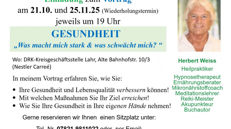 Mit praktischen Tipps und Strategien das eigene Wohlbefinden steigern - für mehr Lebensqualität. Nehmen Sie Ihre Gesundheit in die eigenen Hände. Melden Sie sich jetzt an und starten Sie Ihre Reise zu einem gesünderen Leben! Zu weiteren Informationen ...
