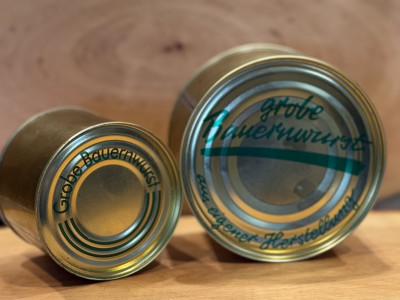 Grobe Bauernwurst aus eigener Herstellung in der Dose