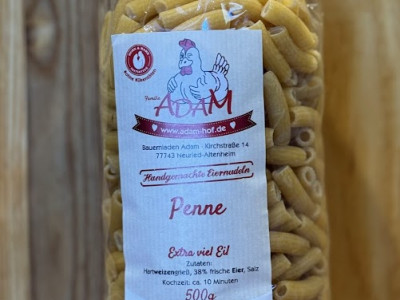 Diese Penne entstehen aus Hartweizengrieß und frischen Eiern. Die Röhrenform eignet sich für tomatige Saucen, Cremes und Aufläufe.