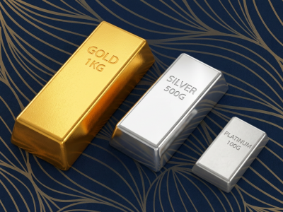 Physische Barren aus Gold, Silber und Platin