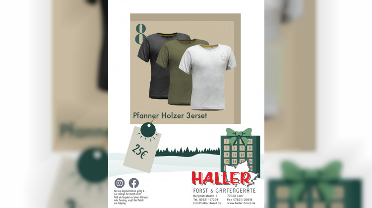Das Holzer Set bringt drei Shirts für Arbeit und Freizeit. Angenehm zu tragen und langlebig. Heute für 25 Euro bei Haller Forst und Gartengeräte. Solange verfügbar.