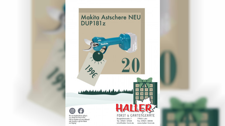 Die neue Makita Astschere schneidet sauber und kraftvoll. Ideal für Baumschnitt und Gartenpflege. Heute für 199 Euro bei Haller Forst und Gartengeräte. Solange verfügbar.