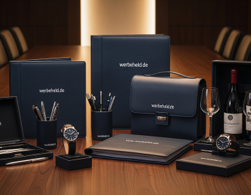 werbeheld bietet exklusive Business-Werbeartikel für die höchsten Ansprüche: Edle Schreibsets und Luxus-Schreibgeräte führender Marken, veredelt mit Gravur oder Prägung. Leder-Accessoires wie Notizbücher, Kartenetuis und Aktenmappen mit individuellem Firmenlogo. Premium-Geschenksets für Jubiläen, Vertragsabschlüsse und besondere Anlässe. Hochwertige Weinsets und Genuss-Präsente für exklusive Kundenpflege. Individuell gestaltete Präsentschatullen und Geschenkboxen, die bereits beim Öffnen beeindrucken.