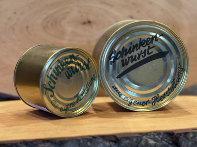 Schinkenwurst aus eigener Herstellung in der Dose
