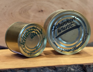 Schinkenwurst aus eigener Herstellung in der Dose